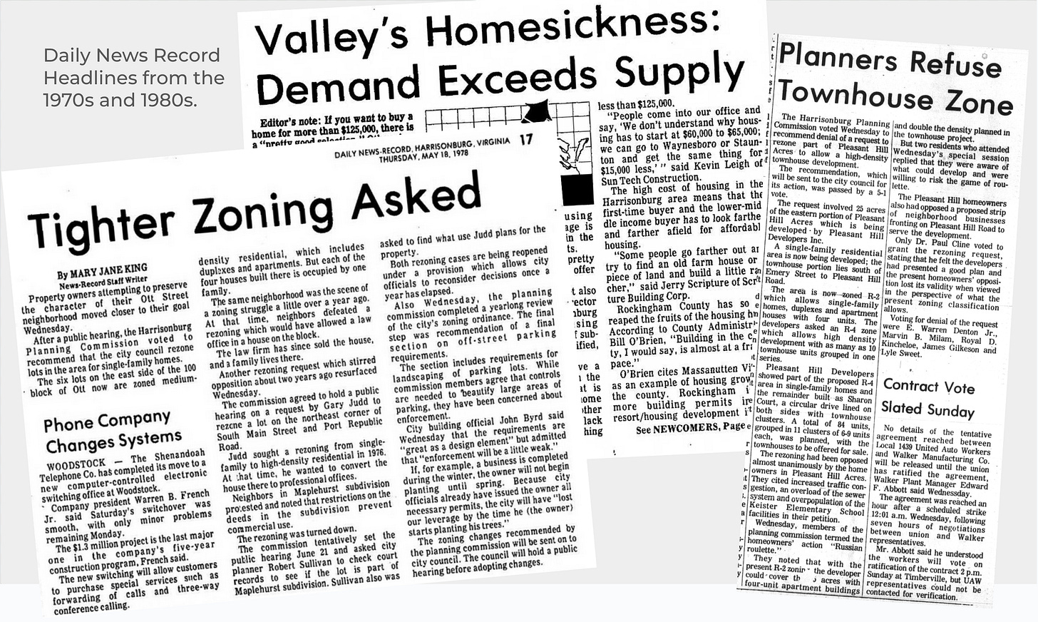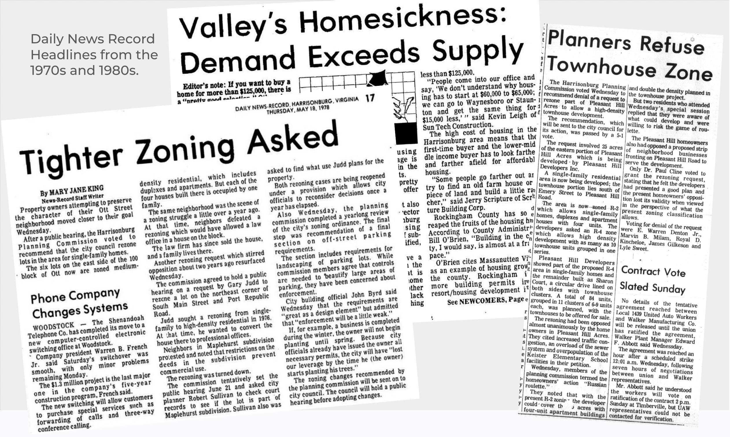 The 1970s and 1980s were a turning point for local housing policy across the U.S. Zoning ordinances became more strict as homeowners began to push back against new development and adaptive reuse of existing structures. A wave of downzonings swept the country, and Harrisonburg was no exception.